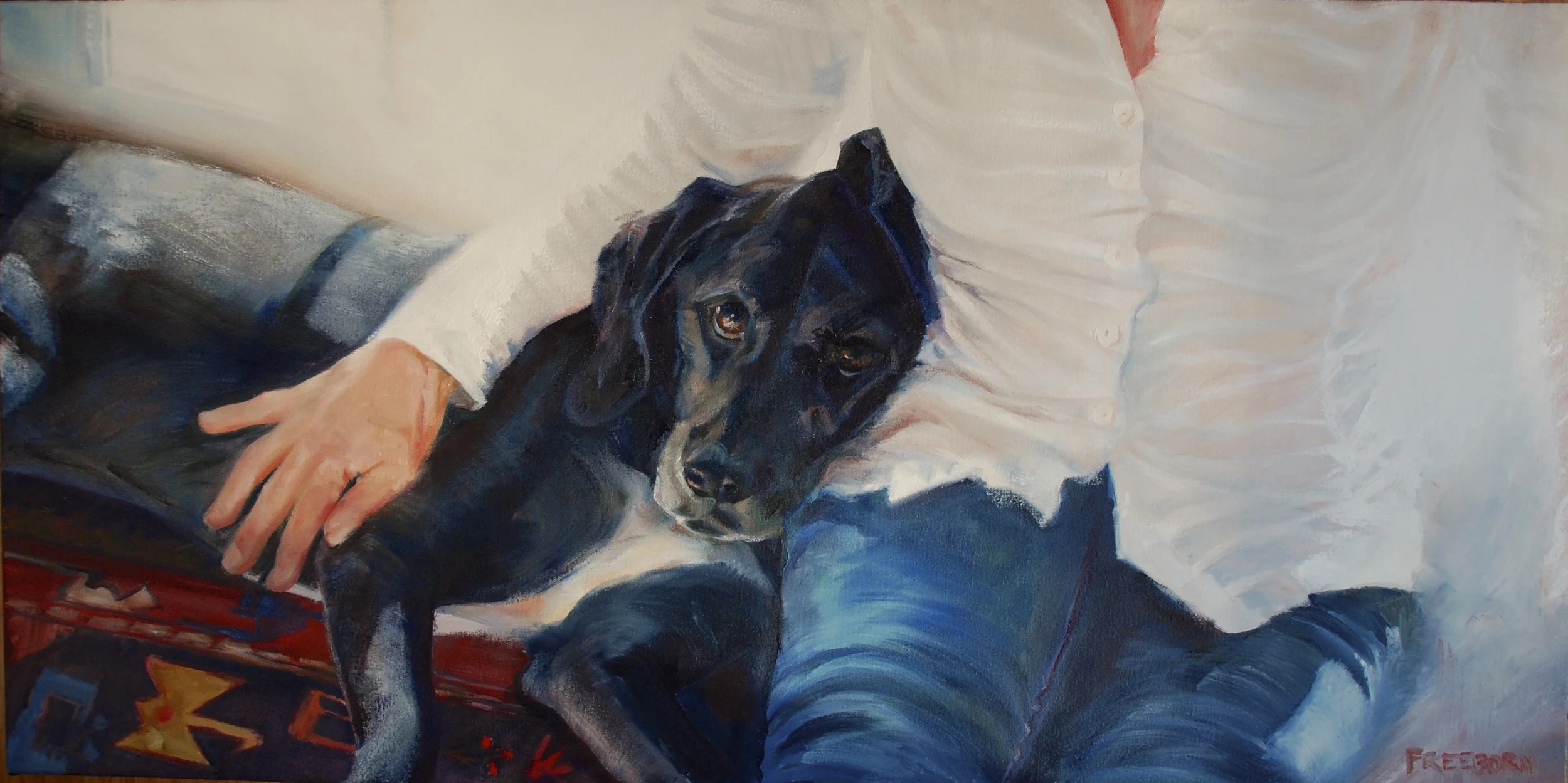 To quote a friend, these paintings portray the intimate conversation between species; the human offering a safe place to rest and trust shown through the eyes of the creatures in their arms.